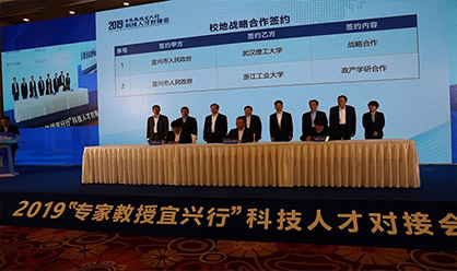 ????????2019年10月22日,宜興國際環(huán)保城科技發(fā)展有限公司(浙江工業(yè)大學(xué)化學(xué)工程學(xué)院高塍研究院)周春松教授一行參加了2019“專家教授宜興行”科技人